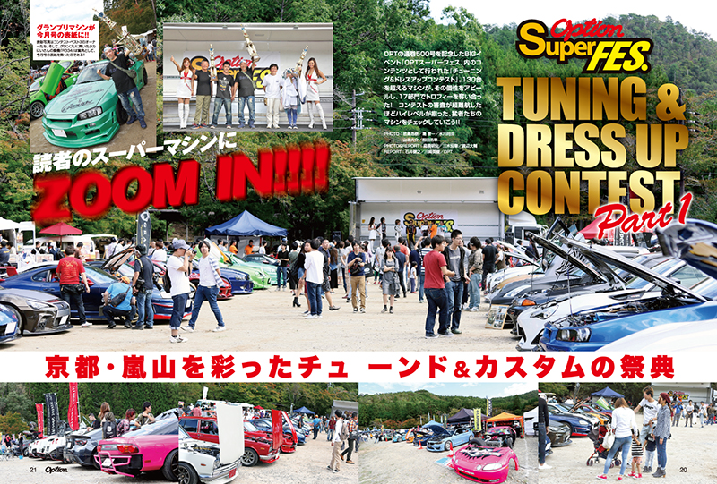 オプション1月号は、創刊500号記念イベント・OPTスーパーフェス内のコンテンツ『チューニング&ドレスアップコンテスト』の結果とともに参加マシンを総力取材。同イベントと並行して実施された『メーカー対抗スイスポ3番勝負・峠編』。ライトチューンでの前回の最高速の結果を受けて各メーカーも峠仕様に変更して臨んだ峠全開バトルにも注目!!