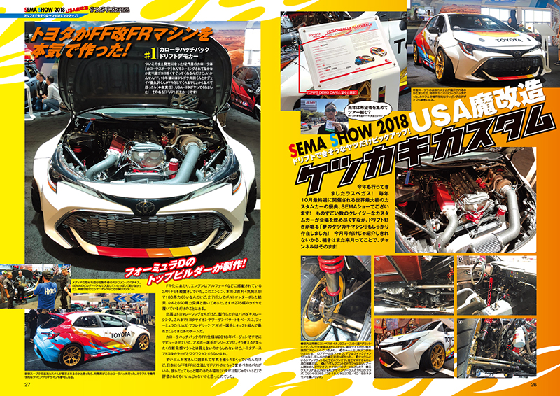 ドリフト天国、平成最後の12月号はアメリカの最先端ドリ車メイクを紹介。ラスベガスで開催された『SEMA SHOW見聞録』を大特集!!